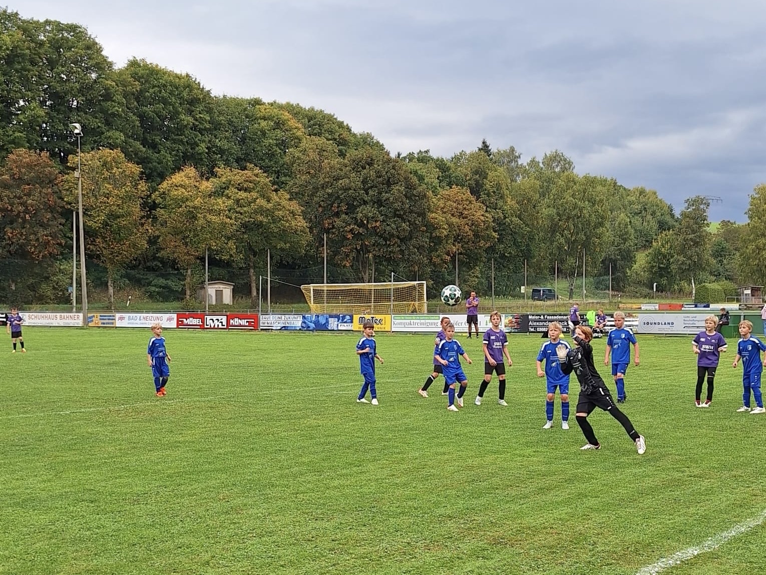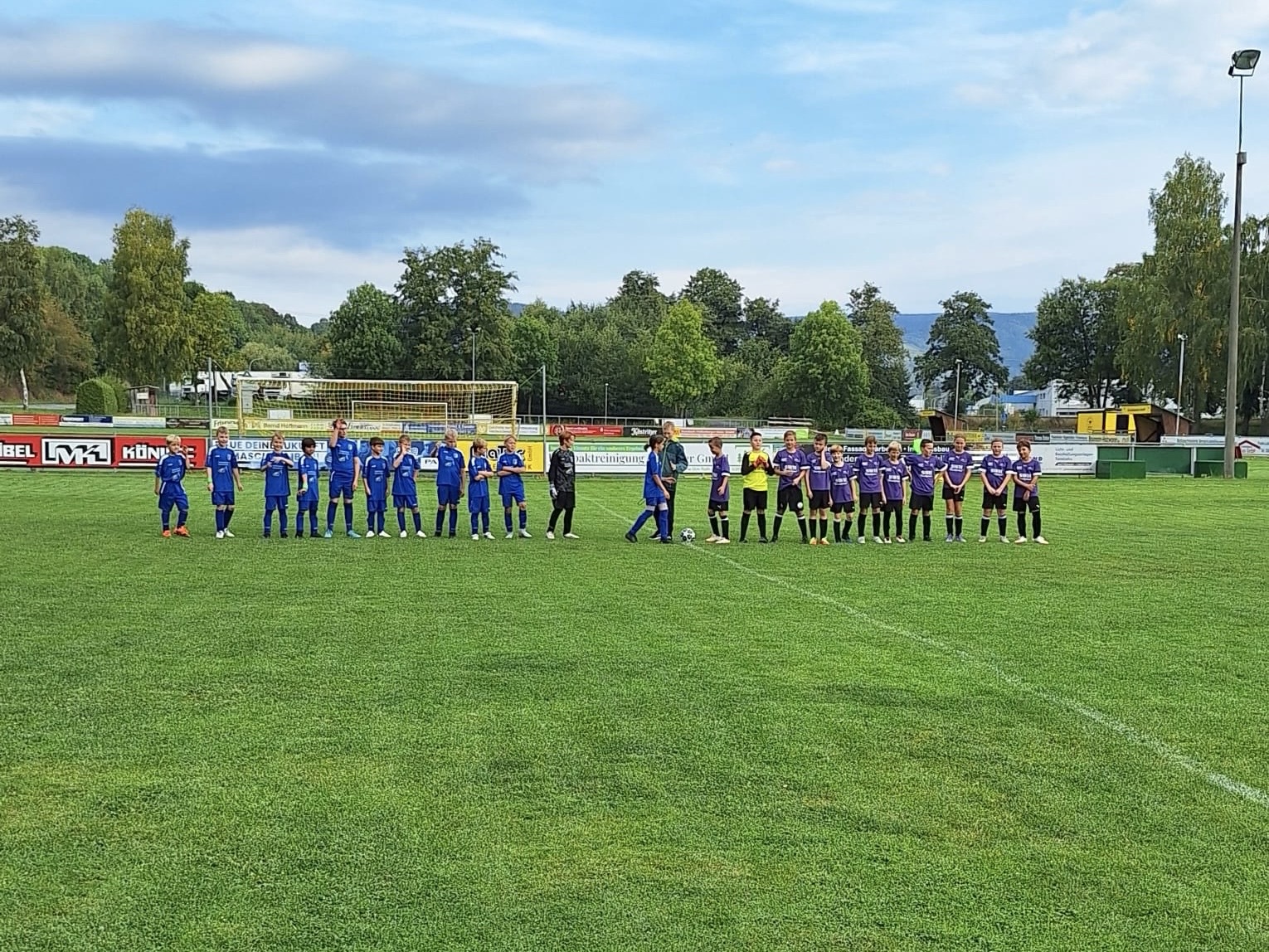 Am 21.09.2025 stand für unsere E-Junioren das 1. Auswärtsspiel in Viernau bei der 3. Mannschaft des FC Steinbach-Hallenberg an. An diesem Sonntag gingen unsere Jungs und Mädels bereits in der 2. Spielminute durch Matteo Nößler in Führung. Bis kurz vor der Halbzeitpause war das Spiel sehr ausgeglichen und die 0:1 Führung für unsere Farben hatte Bestand. Nach dem 1:1 Ausgleich der Gastgeber, brachte eine kritische Schiedsrichterentscheidung kurz vor der Halbzeit die Gastgeber mit 2:1 in Führung. Der Treffer wurde nach langem hin und her dann doch zurückgenommen. Nach der Halbzeitpause konnte unser Team leider nicht ganz an die Leistung der 1. Hälfte anknüpfen und bekam noch 4 Gegentreffer und verlor die Partie am Ende mit 5:1. Trainer Jörg zeigte sich dennoch am Ende sehr zufrieden, da die Mannschaft bis zum Schluss gekämpft hat.