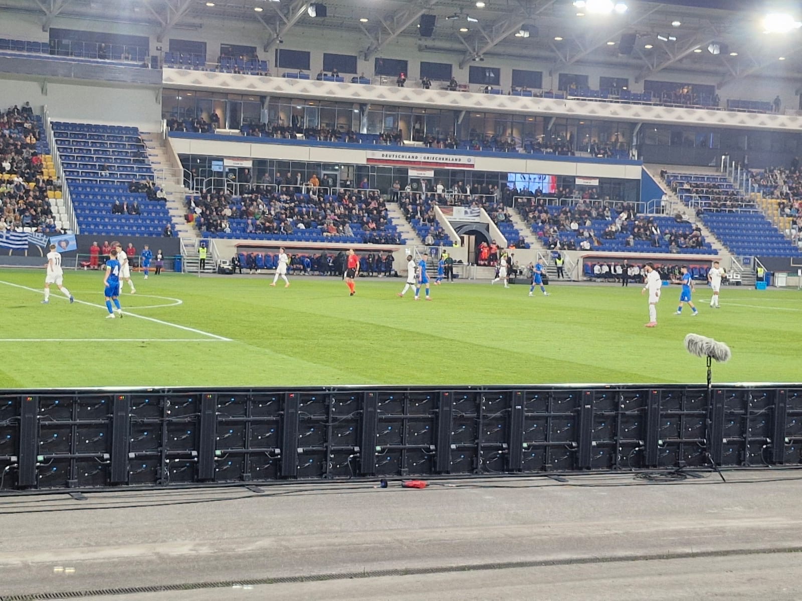 Am Freitag, den 10.10.2025 stand für einen kleinen Teil unserer D-Junioren das nächste besondere Highlight an. Gemeinsam ging es mit Eltern, Geschwistern und Freunden nach Jena zum U21 EM Qualifikationsspiel Deutschland vs Griechenland. Aber nicht nur unser Verein war hier zahlreich vertreten sondern auch der SV Stahl Brotterode Trusetal, wo sich deren Social Media Beauftragter Adrian Storch mit auf unser Foto geschlichen hat 😉
